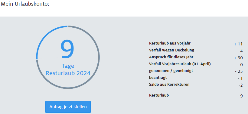 Die Anzeige des Resturlaub erhalten Sie auch unter <Mein Kalender>.